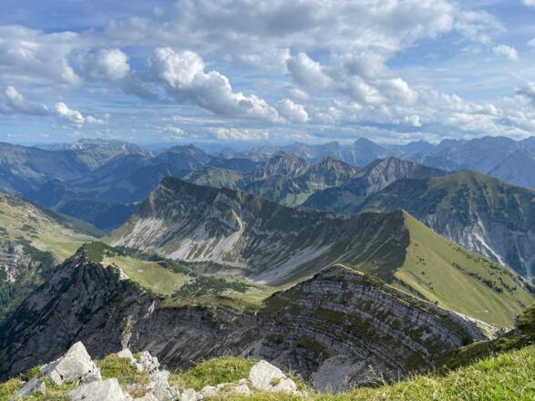 Wer viel Ausdauer und Kraft in den Muskeln hat, nimmt die zusätzlichen Auf- und Abschwünge auf die Gipfel mit und ergattert sich somit nicht nur den Ausblick ins Karwendelmassiv, sondern auch zu den Gipfeln Richtung Achensee.