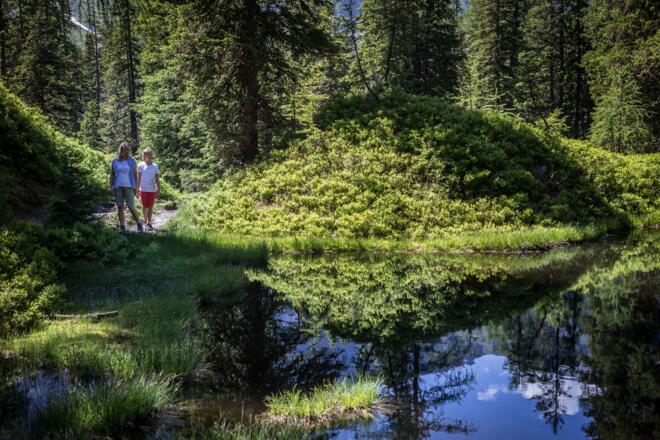 Naturjuwel im Rauriser Talschluss Kolm Saigurn: Mit seinen 80 dunklen Moortümpeln, Sturzfichten, Zirben, zahlreichen grünen Moosen und romantischen Lichtungen ist er eines der beliebtesten Ausflugsziele im Rauriser Tal. 2014 wurde der Lehrweg im Rauriser Urwald als einer der 33 besten in Österreich ausgezeichnet.