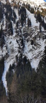Ca. 50m links des Rechten Steinwandfalles gibt es eine leichte Dreiseillängen-Eislinie.