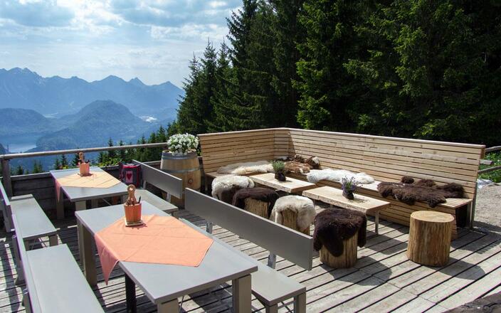Die Rohrkopfhütte liegt auf halbem Weg zwischen der Berg- und Talstation der Tegelbergbahn auf 1.320 Metern Höhe. Von der Hütte eröffnet sich ein traumhafter Blick auf die Voralpenlandschaft, die zahlreichen Seen sowie die weltberühmten Königsschlösser Neuschwanstein und Hohenschwangau. Im Winter führt die Talabfahrt von der Bergstation direkt an der Rohrkopfhütte vorbei. Über den Schutzengelweg gelangt man von der Tegelberg-Talstation in ca. 1 1/2 Stunden zur Hütte.