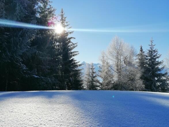 Bei entsprechender Schneelage geht es etwas gemütlicher im Mittelteil durch den Wald. Nur das  letzte Stück erfolgt wieder auf der Piste.