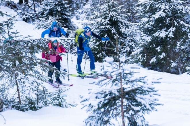 Skitourenausrüstung, Helm, Wechselkleidung (Umziehmöglichkeit auf der Hütte). Am Abend: Stirnlampe!