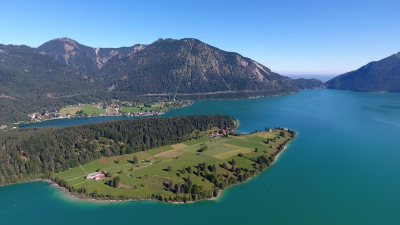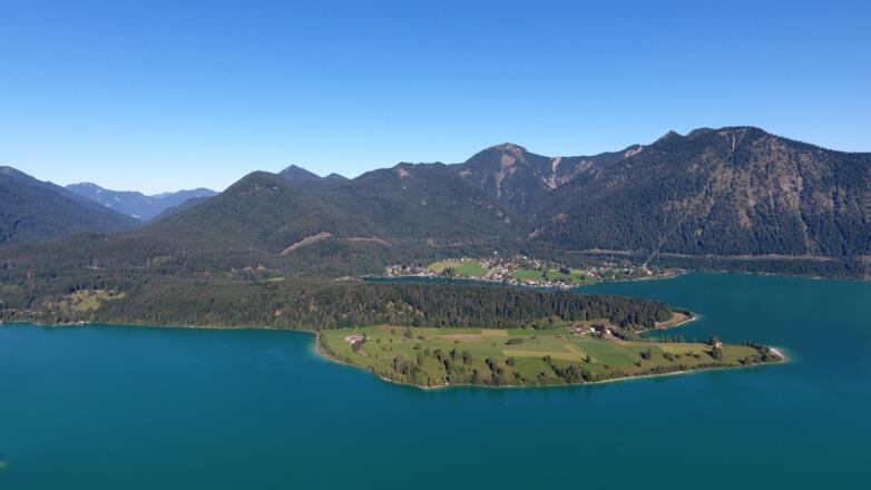 Meist asphaltierter Weg direkt am Walchenseeufer, vorbei an Wiesen, Höfen und dem Kirchlein auf der Halbinsel. Weiter zum "Klösterl" und über den Katzenkopf-Buckel zurück.