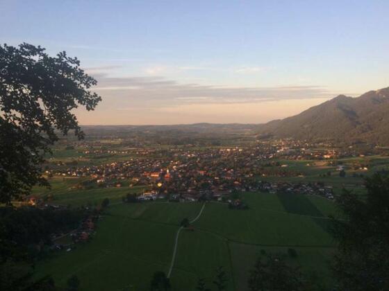{920 m), wo sich eine weitere urige Einkehrmöglichkeit mit almtypischer Brotzeit bietet. Zurück zum Parkplatz Strehtrumpf geht es über Torgraben und Zeppelinhöhe. An dem Gedenkstein zu Ehren des Luftfahrtpioniers bietet sich ein schöner Ausblick über das Achtental bis hin zum Chiemsee.