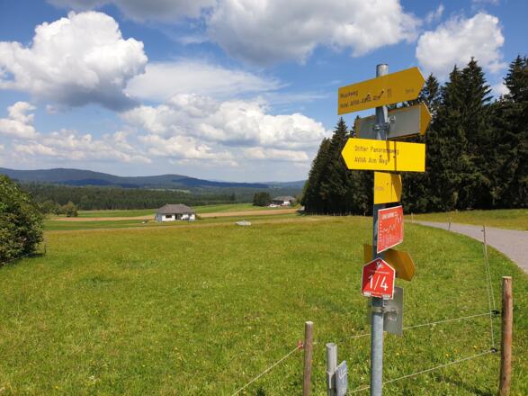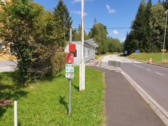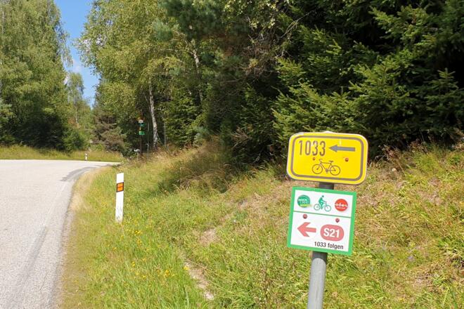 Von der Helfenberger Hütte entlang der Straße durch Afiesl, vorbei am Hotel Bergergut nach Gugelwald (Hotel Guglwad), dann die tschechische Grenze querend bis zur Abzweigung Radweg Nr. 1033. Weiter auf wenig befahrender schmaler Straße bis Pasecna, dann auf ausgebautem aspahltiertem Radweg zurück nach Österreich durch Hörleinsödt, Richtung Haslach. Ab Güterweg Leitenmühle folgt ein langer Anstieg bis Innenschlag. Dann wieder einfach weiter bis zur Helfenberger Hütte