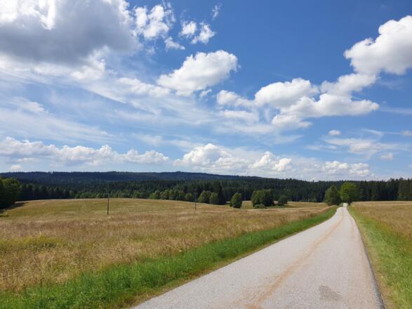 Radtour im Mühlviertler Hochland und in Tschechien, landschaftlich sehr reizvoll, entlang von naturbelassenen Wald- und Weideflächen in Tschechien, dem sogenannten "Grünen Band", großteils asphaltierte Straßen und Nebenstraßen, Start Helfenberger Hütte