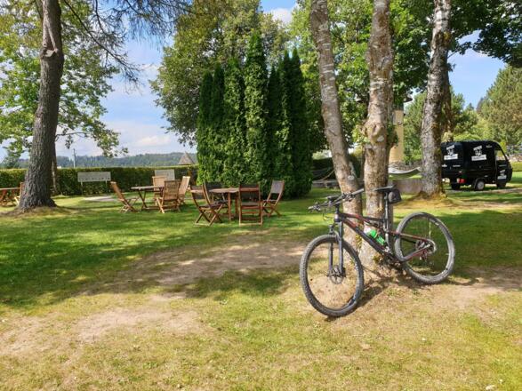 Rastplätze mit Getränken zur Selbstversorgung bei der Helfenberger Hütte und im Garten des Hotels Guglwald, ursprüngliche, weite Landschaft in Tschechien geniesen, Pizza in Jimmys Pizzeria in Hörleinsödt mit herrlicher Aussicht.