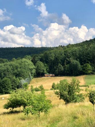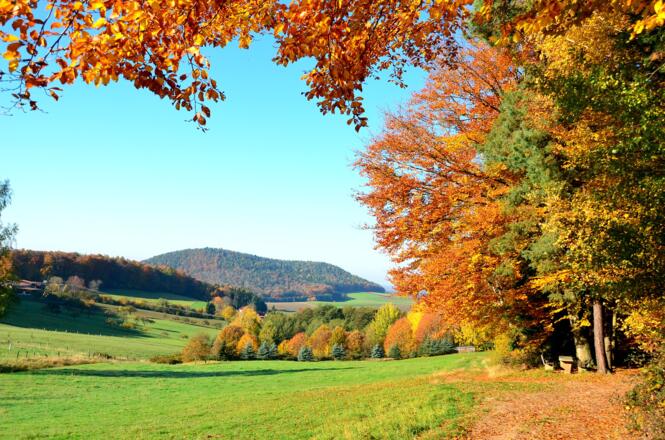 Der Rundwanderweg Nr. 10 führt uns vom Start- und Zielpunkt, Parkplatz an der Marienkapelle in Eichenberg, einmal um Eichenberg herum. Im ersten Abschnitt der Wanderung laufen wir auf dem „Rentnerweg“ nördlich von Eichenberg zwischen Wald, Streuobstwiesen und Kleingärten bis zur Waldgartenstraße. Vom „Rentnerweg“ aus hat man die Kirchtürme des Ortes immer im Blick, nur die Perspektiven wechseln. Am Ende des „Rentnerweges“ wechseln wir auf einen schmalen naturbelassenen Pfad, der uns bergauf zum nächsten Forstwirtschaftsweg führt. Nach ca. einem Kilometer steigen wir erneut einen schmalen Pfad hinunter auf den Landwirtschaftsweg auf der „Hohen Bergwiese“, der uns jetzt südlich zur Anhöhe von Eichenberg bringt. Von hier hat man Eichenberg als Postkartenpanorama vor Augen und im Nordosten ist der Kamin der „Alten Ziegelei „zu sehen. Wandern wir im Herbst, vor dem Martinstag, auf diesem Weg, können wir die Freilandgänse des nahen Geflügelhofes auf den Weiden erleben. Am nahen Rastplatz „Am Scheid“ lohnt sich ein Zwischenstopp, um die Fernsicht, teils bis zum Odenwald, auf sich wirken zu lassen. Von hier aus ist es nicht mehr weit nach Eichenberg. Vorbei an der „Alten Kirche“, in der der Dorfladen seinen Platz gefunden hat, der St. Wendelinuskirche und der Kapelle Mariä Heimsuchung, biegen wir rechts ab und haben das Ziel der Wanderung erreicht.