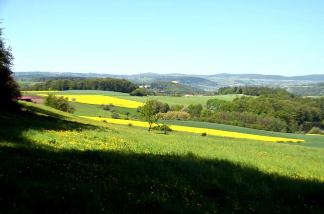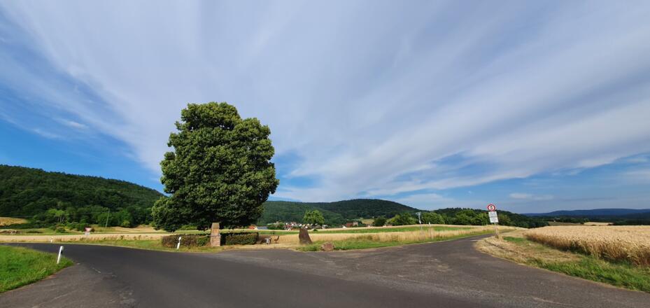 Der kurze Rundwanderweg Nr. 11 führt uns ab dem Parkplatz an der Marienkapelle in Eichenberg rund um die „Alte Ziegelei“. Nach einer kurzen Passage in der freien Landschaft, folgen wir kurz dem Forstwirtschaftsweg, bevor es dann links einen schmalen Pfad in den Wald geht. Bereits nach einem halben Kilometer verlassen wir den Wald schon. Von hier aus hat man einen guten Blick in den Kahlgrund Richtung Sommerkahl und Schöllkrippen. Jetzt gehen wir auf dem Wiesenweg bergab, bis wir auf den asphaltierten Wirtschaftsweg stoßen. Diesem folgen wir bergauf, bis wir die Straße nach Blankenbach queren müssen. Ab hier wandern wir auf Wegen zwischen den landwirtschaftlichen Flächen, die je nach Jahreszeit entsprechend bewirtschaftet sind. Nach etwa einem halben Kilometer queren wir die Ortsverbindungsstraße nach Rottenberg. Unter der mächtigen Linde, die direkt an der Straße steht, und neben dem Bildstock können wir eine Rast einlegen. Von hier ab müssen wir noch eine leichte Senke durchwandern und erreichen nach gut 2,5 Kilometern unseren Ausgangsort an der Marienkapelle.