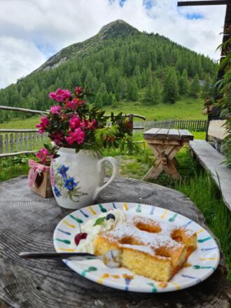 Ab hier führt ein schöner, zum Teil aber recht steiler Wanderweg erst durch den Bergwald, danach auf einem Güterweg bis zu der bewirtschafteten Lackenalm am Fuße des Lackenkogels (2.051 m). Die Lackenalm ist die letzte Einkehrmöglichkeit für die nächsten 4 Stunden.