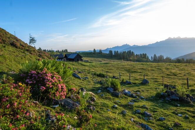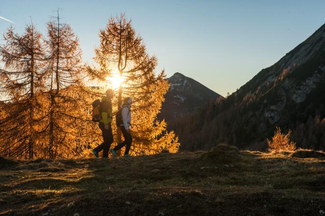 Die heutige Etappe führt mit einem langen Höhenabschnitt gleich über mehrere Gipfel. Wer genug Körner in den Waden hat, kann direkt nach den Lackenalmen bereits einen zusätzlichen Abstecher auf den Lackenkogel unternehmen. Hoch erhebt sich der 2.051 Meter hohe Gipfel über dem Almboden: Über Wurzeltrails und zwischen Schwarzbeerstauden geht es hoch hinaus zu diesem fantastischen Aussichtsberg von Altenmarkt, von dem man bis zum Watzmann, zum Grimming, zum Sonnblick und zum höchsten Berg Österreichs, den 3.798 Meter hohen Großglockner, blicken kann.