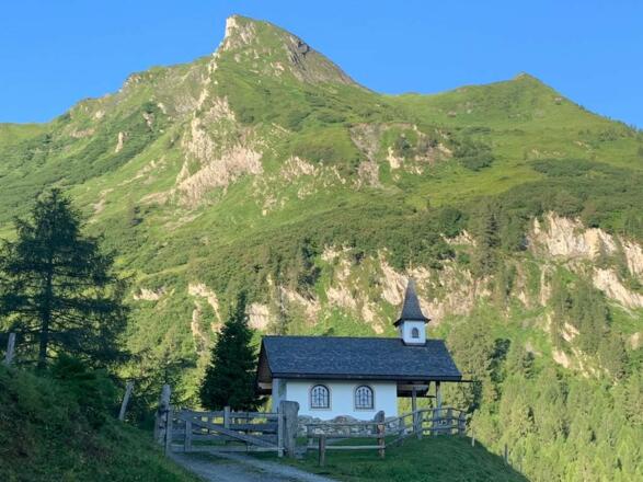 Um am nächsten Tag wieder auf die Hauptroute und somit auf Etappe 5 des Salzburger Almenweges zu kommen beginnt bei der Heinreichalm ein leichter Aufstieg zur Heinreich-Kapelle, die in der malerischen Kessellandschaft fast schon kitschig wirkt. Vorbei an der urigen Kokaseralm führt der Pfad anfangs durch den Wald bis zu einem Sattel. Das Gefühl der „Bergeinsamkeit“ macht sich breit – umgeben von Natur und Stille kann Energie getankt werden. Trotz der eigentlichen Nähe zum Tal fühlt man sich in diesen Kessellandschaften komplett abgeschieden und abseits jeglicher Zivilisation. Über ein ausgedehntes Weidegebiet leitet der Pfad zur urigen Präau Hochalm (bewirtschaftet). Bei genauerer Betrachtung dieser Alm kann man erkennen, dass die Form des Daches dem Gipfel im Hintergrund gleicht. Viele Bäche und Übergänge säumen den weiteren Weg – wasserdichtes Schuhwerk ist empfehlenswert. Bei der Abzweigung Jagahäusl, wo sie der Präaualmweg und der Dorferwaldweg kreuzen mündet die Etappenvariante 4 wieder in den Wegverlauf der Etappe 5 des Salzburger Almenweges.