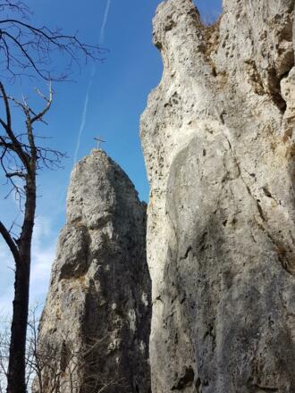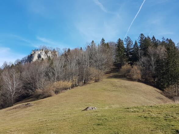 Beim Peilsteiner vorbei, weiter der Straße folgen (nicht die Straße rechts rauf) bis auf einer Höhe von 680m (kurz vor einem dem ehemaligen Bauernhof Grestenberg) links ein Weg hinunter abzweigt. Diesem folgen bis zum Bauernhof Neuhaus. Gehen dann auf der Asphaltstraße flach weiter, halten uns bei einer Straßengabelung rechts und sind auch schon bei einigen Wochenendhäusern. Nun die Straße verlassen und rechts der Häuser den Hang hinauf. Kurz geht es die Wiese leicht abfallend und kommen zu einem Pfad, welcher zum Sauzahnbauern führt. Wir folgen aber diesem nicht, sondern zweigen gleich rechts ab auf einen schmalen Pfad welcher zum idylischen Sauzahn führt.