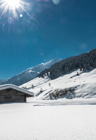 Die Schönangeralm liegt am Ende des Tales, 5 km hinter dem Ort Auffach.