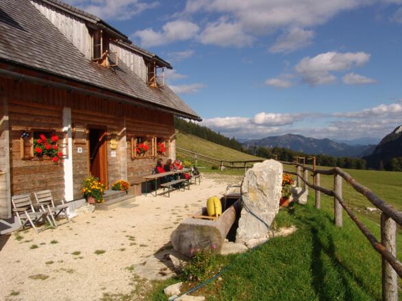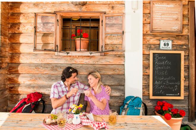 Die wohlverdiente Einkehr bei der Hüttenwirtin Waltraud ist ein Genuss! Hier werden die Gäste mit herzhaften Speisen aus der Almküche verwöhnt.