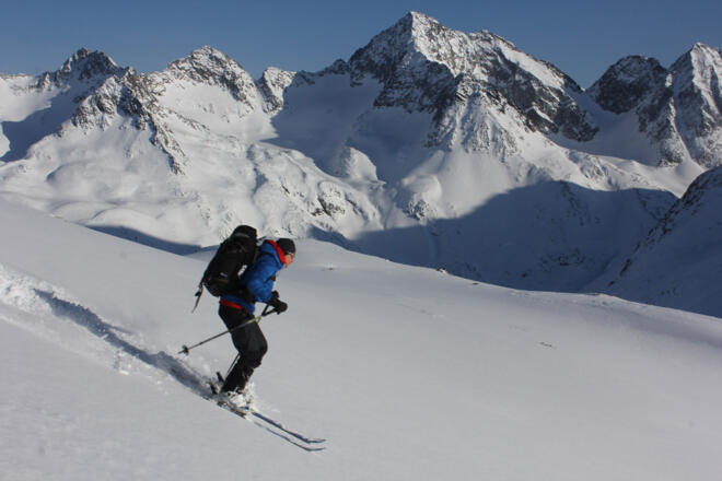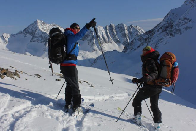 Die Startetappe dieser genauso einsamen wie eindrucksvollen Schober-Skitourenrundtour hat gleich am ersten Tag einen waschechten Dreitausender ... aber auch knapp 1300 Höhenmeter im Rucksack!