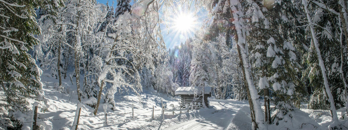 Weit abseits des Getümmels auf den Skipisten findet man auf der Schönangeralm nach Auffach herrliche Stille. Start der Tour ist beim Gasthof Schönangeralm, vorbei an der märchenhaften Kapelle.