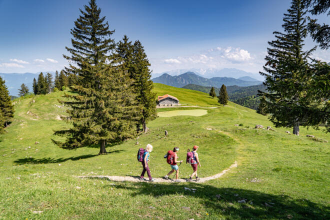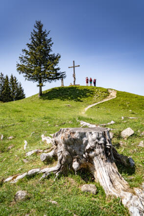 Wer auf der gemütlichen Schuhbräu-Alm übernachten möchte, für den empfiehlt sich die Drei-Gipfel-Tour (Mitterberg, 1214 m, Farrenpoint, 1273 m und Sulzberg 1119 m), die auf der Hütte startet und endet. Mit 850 Höhenmeter Auf- und Abstieg ist sie zwar keine anspruchsvolle Bergtour, hat es aber trotzdem konditionell in sich. Zur Belohnung gibt es Ausblicke vom Chiemsee bis zum Wendelstein.