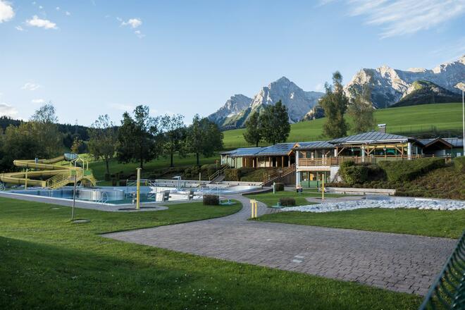 Das Erlebnisbad Sommerstein in Maria Alm ist auch für Familien mit Kleinkindern attraktiv. Im eigenen Mutter-Kind-Bereich lassen sich bereits die kleinsten Badegäste auf das Element Wasser ein und zeigen mit fröhlichem Lachen ihre Begeisterung. Neben dem Kinderbecken gestalten der Spielbach und der Kinderspielplatz den Badetag – auch außerhalb der Beckenlandschaft - besonders erlebnisreich. Das Wasser im attraktiv angelegten Erlebnisbad wird geheizt und auf durchschnittlich angenehme 24°C erwärmt. Dass die Familien auch kulinarisch bestens versorgt sind, dafür sorgt der Pächter vom Buffet. Freier Eintritt so oft Sie wollen mit der SalzburgerLand Card