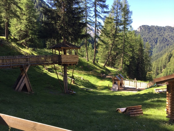 Erlebnisspielplatz mit Baumhaus, Wasserspiele, Baum-Brücken und Grillstellen.