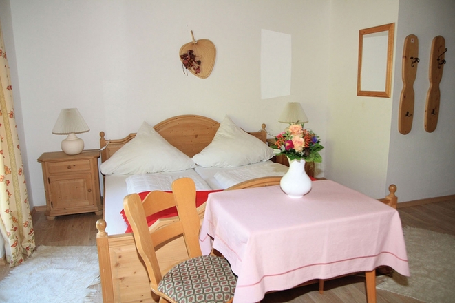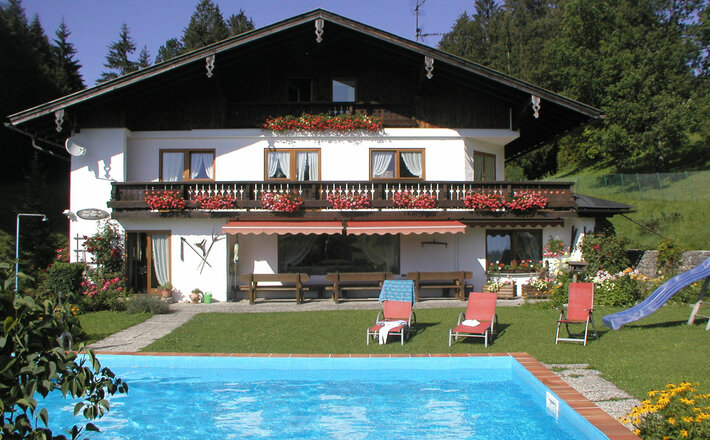 Erholen Sie sich in einer unserer komfortabel ausgestatteten Ferienwohnungen. Je 2 separate Schlafzimmer, je 2 - 3 Bad/DU, WC, große Küche und großes Wohnzimmer oder große Wohnküche, diverse Küchengeräte, SAT-TV, Balkone mit herrlichem Blick auf die Berge. Beheiztes Schwimmbad, sonnige Terrasse und Liegewiese, Spielplatz und -zimmer, Tischtennis und kleiner Fitnessraum. Frühstück möglich. Zudem bieten wir Ihnen ebenso zwei Einzelzimmer und jeweils ein Doppel- und Mehrbettzimmer. Bitte Prospekt anfordern.