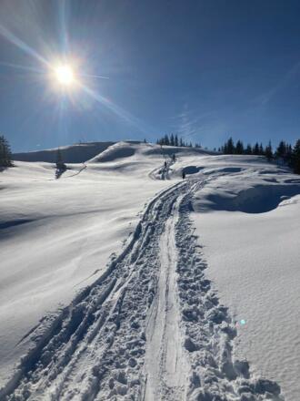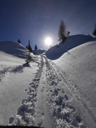 Das Bergbaenteuer beginnt direkt in Dorfgastein, denn mit der Gipfelbahn-Fulseck geht’s in luftiger Höhe bis zur Mittelstation. Dort angelangt, folgt man dem beschilderten Schneeschuhtrail in Richtung Heumoosalm (im Winter nicht bewirtschaftet). Gemächlich gleitet man über den glitzernden Schnee in Richtung Arltörl, wo die bekannte Kapelle zum Innehalten einlädt. Weiterhin bergauf geht’s in Richtung des Kieserls, der neuen Bergstation inkl. 360° Panoramaterrasse. Von dort aus ist das Ziel, die Bergstation der Gipfelbahn-Fulseck bereits in Sicht.
