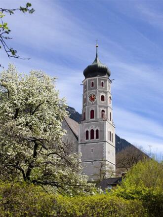 Die ehemalige Bludenzer Stadtpfarrkirche St. Laurentius wurde um 1500 errichtet und um die Mitte des 18. Jahrhunderts nach Westen erweitert. Der Turm stammt aus der Zeit um 1670. Er trägt Apostelfiguren sowie das Wappen der Stadt Bludenz und das österreichische Bindenschild. Der schwäbisch anmutende Zwiebelturm bildete das Vorbild beim Bau zahlreicher weiterer Kirchtürme des Umlandes.