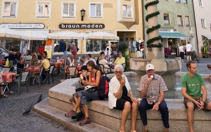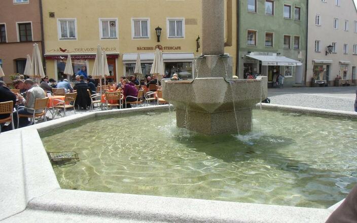 Das moderne Denkmal des heiligen Magnus markiert heute den Standort des tatsächlichen Stadtbrunnens aus dem Mittelalter. Damals wie heute bildete der Stadtbrunnen das Herz Füssens. Die angrenzende Reichenstraße lädt mit ihren schönen Geschäften und zahlreichen Cafes und Lokalen zum Bummeln und Genießen ein.