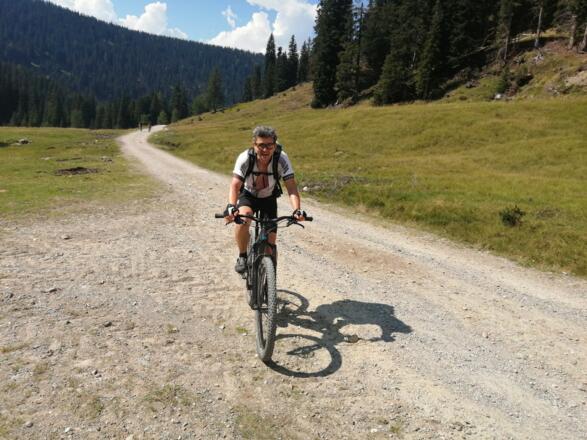 Die restliche Abfahrt über Casamazzagno bis Comelico ist unspektakulär, die kleine Pizzeria direkt am Dorfplatz ist unbedingt empfehlenswert! Die weitere Auffahrt zu den Rotwandwiesen ist nochmals außerordentlich fordernd und schweißtreibend! Weiter am Radweg über Moos, Sexten und Innichen nach Toblach.