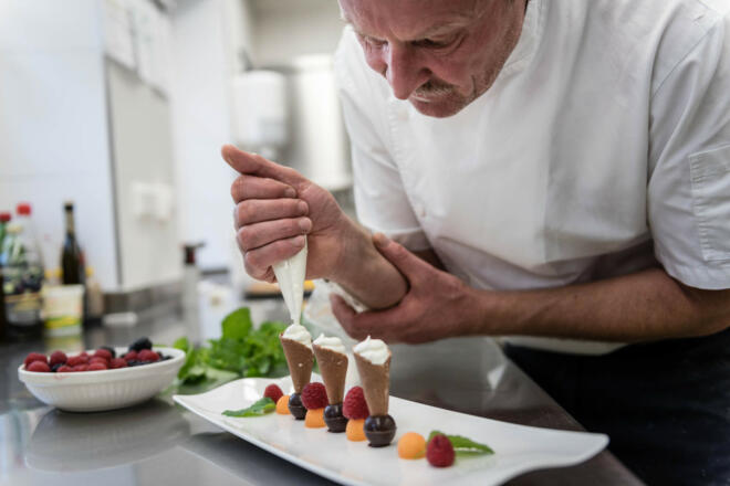 Wir servieren täglich neu ein 2 bis 5 gängiges Menü für unsere Restaurant-Besucher. Kochkunst auf hohem Niveau kann im Rahmen eines exklusiven Gourmetmenüs genossen werden. Lassen Sie sich darum von unserem täglich wechselnden Menü überraschen! Die Tischzahl ist täglich auf zwei externe Reservierungen begrenzt – kein Ruhetag. Bitte reservieren Sie deshalb rechtzeitig Ihren Tisch.