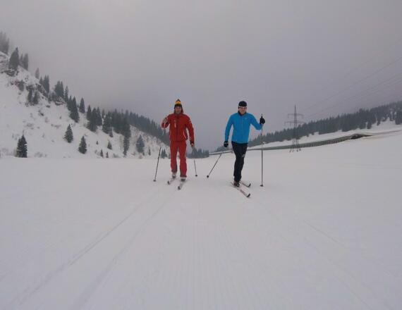 Gut gespurte Loipe für klassische Langläufer & Skater!