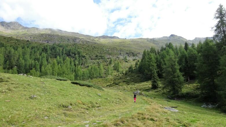 Rückweg über denselben Steig zur bewirtschafteten Falkaunsalm (Einkehr ist Pflicht) und weiter zum Ausgangspunkt.