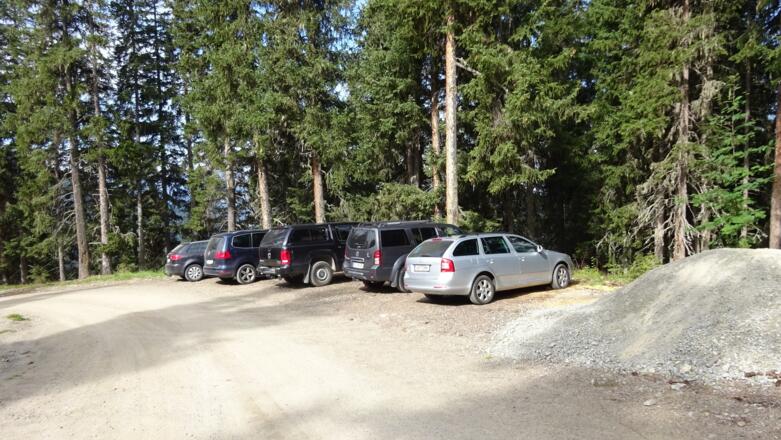 Gebührenfreier Parkplatz in 1.830 m Seehöhe, ca. 15 Min. unterhalb der Falkaunsalm