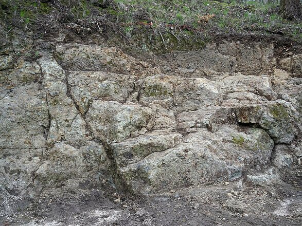 Man kann hier stark zertrümmerte und zum Teil geschmolzene Gesteinsreste in einer sogenannten Breccie als Überreste des Meteoriteneinschlags im Ries vor 14,5 Millionen Jahren finden. Beim genaueren Betrachten des Gesteins fallen in einer grauen Grundmasse helle Einsprenglinge sowie dunkle poröse Gläser direkt ins Auge.