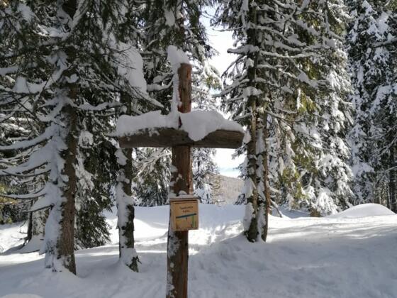 Gut beschilderte Skitourenroute im Nahbereich des Skigebiets Monte Popolo mit finaler Kammwanderung zum gut getarnten Gipfelkreuz des Tannkoppens.