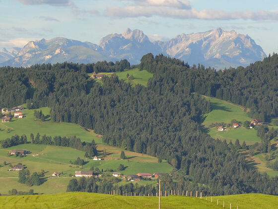 Die knapp zweistündige Rundwanderung auf den Hüttersberg ist eine ruhige, aussichtsreiche Tour, die immer wieder den Blick auf das großartige Alpenpanorama lenkt. Die Gipfelschau reicht von der Nagelfluhkette über die Allgäuer Hochalpen, Bregenzerwälder Berge und das Rheintal bis hin zum Schweizer Alpsteinmassiv mit dem mächtigen Säntis.