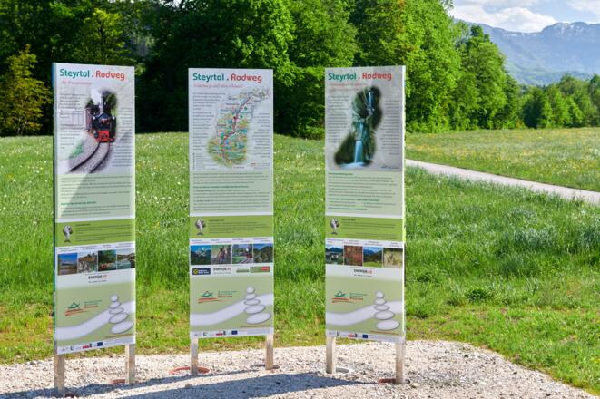 Steyrtal Museumsbahn - Die dampfbetriebene Schmalspurbahn fährt von Juni - September an den Wochenenden. Die Strecke führt von Grünburg bis Steyr entlang des Steyrflusses. Ein eigener Waggon für die Räder ist vorhanden. Der Radtransport ist gratis.