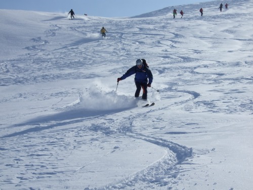 Zu Recht sehr beliebt , weshalb man auch hier fast immer jemanden antrifft. Bis auf den steilen Gipfelhang eine einfache Skitour, bei dem die letzten Meter zum Gipfel vom Skidepot zu Fuß bewältigt werden – für „durchschnittliche“ Bergfexen also mühelos machbar