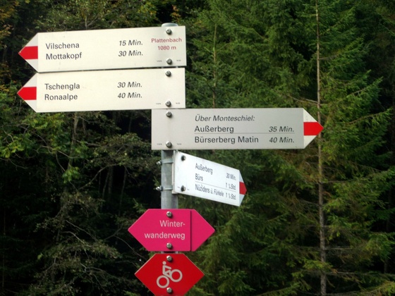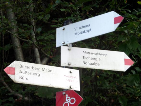 Vom Schwabenhaus auf der Tschengla über die Steinkreise-Vilschena-Mottakopf. Der Bergrücken in Richtung Illtal-Bludenz nennt sich Tschalengaberg. Der Weg beginnt am Mottakopf und endet in Bürserberg-Außerberg. Abstecher (10 Minuten hin und zurück) zu einem Wasserfall. Rückweg über Fürkeleweg-Mottawaldweg-Steinkreise-Tschengla.