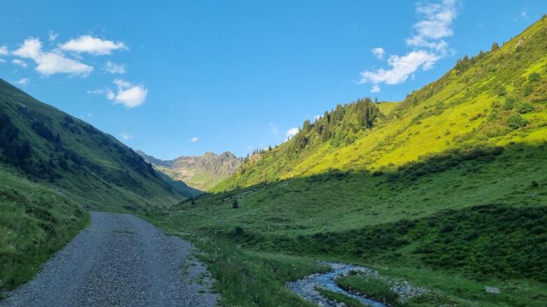 Vom Startpunkt der Tour in St. Gallenkirch fährst Du auf dem Radweg bis zum Mountain Beach in Gaschurn. Hier zweigt die Tour links ab ins unberührte Valschavieltal - mit seinen Wasserfällen und alten Maisäßsiedlungen eines der ursprünglichsten Seitentäler des Montafon. Auf dem breiten Schotterweg wird die Tour bis zum Maisäß Valschaviel zu einer ziemlich knackigen Angelegenheit mit konstanter Steigung. Vorbei am malerisch angelegten Fischteich, begleitet von Gebirgsbächen fährst Du nun auch etwas flacherem Gelände ins hintere Tal bis zur Mardusa Alpe. Der letzte Anstieg zur Hirtenhütte auf dem inneren Rossberg (2.160 m) fordert nochmals volle Konzentration, oben angekommen erwartet Dich ein großartiges Panorama auf die umliegende Berglandschaft. Hier bekommst Du Abstand vom Alltag, denn außer ein paar Wildtieren siehst Du nur die herrliche Natur.