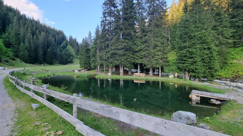 Auf demselben Weg geht es wieder retour. Da keine Einkehrmöglichkeiten vorhanden sind, solltest Du einen Rucksack mit ausreichend Verpflegung mitnehmen. Wenn genügend Zeit eingeplant wird, lässt sich die Tour auch mit einer Wanderung zum Valschavielsee oder auf den Albonakopf (2482 m) verbinden.