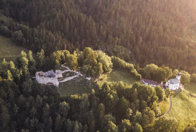 Ein kurzer Anstieg am Romediuskirchl wird mit einer schönen Aussicht belohnt. Weiter geht es zum Thaurer Schloss und schließlich zum Thaurer Almparkplatz.