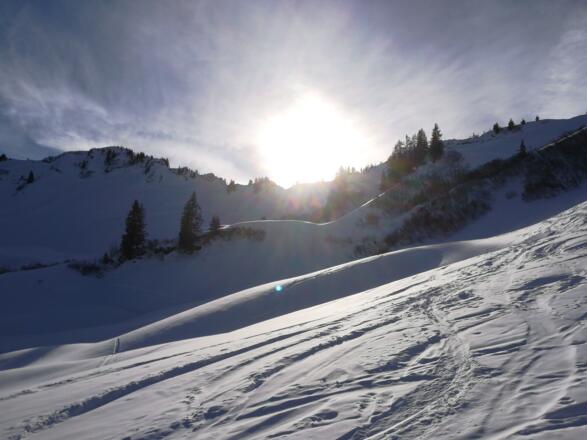 Duch die Nordhangausrichtung auch bei geringer Schneehöhe durchführbar.