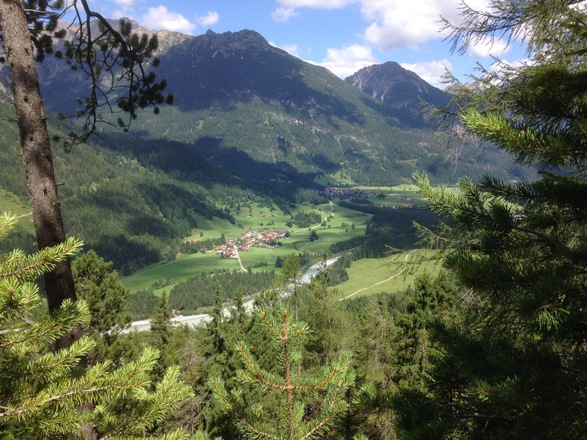 Sie gehen vom Sportplatz zum Lech und von dort führt der Rundwanderweg am Lech entlang bis zur Unterführung der Bundesstraße. Der leicht ansteigende Weg geht jetzt durch den Mischwald hinauf bis zur Bergstation vom Stoanmandllift. nach ca. 100 m zweigt jetzt links der Panoramaweg ab durch den romantischen Wald bis zum Forstweg. Nach ca. 10m Minuten gelangen sie auf den Forstweg. Der ansteigende Weg führt über Kerhen hinauf, durch einen romantischen Felstunnel weiter. Das letzte Stück geht vorbei an der saftigen Viehweide bis zur Almwirtschaft.