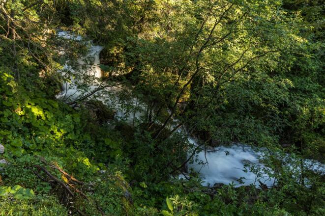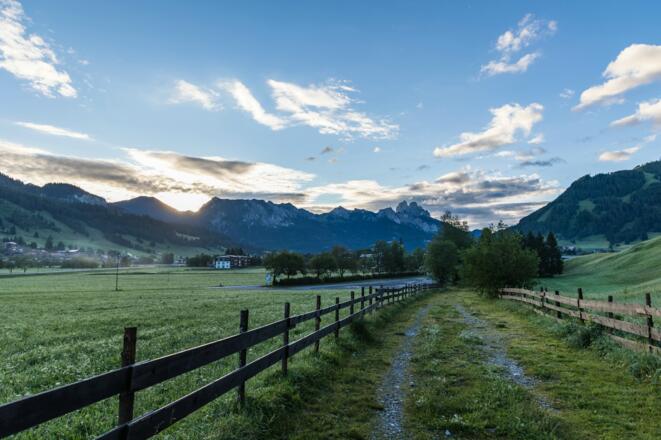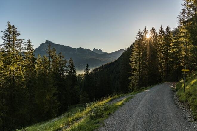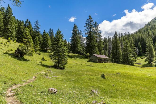 In der nordwestlichen Ecke des Parkplatzes gibt es einen kleinen Durchlass auf den Forstweg hinter dem Parkplatz. Von hier aus starten wir in Richtung nordwesten und folgen dem Forstweg an Neu Kienzen vorbei. Wir gelangen an eine Teerstraße und biegen hinter den Häusern nach links ins Älpelestal in Richtung Älpele, Zierleseck, Gaishorn (Beschilderung) ab. Je nach Vorliebe kann man nun auf der Forststraße bleiben, oder nimmt den alten Älpelesweg, beide bringen einen bis zur Alpe Älpele.