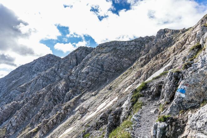 Am Grat kann es recht schnell warm werden, deshalb möglichst früh unterwegs sein. Außerdem ist dann am Gipfel noch nicht so viel los.