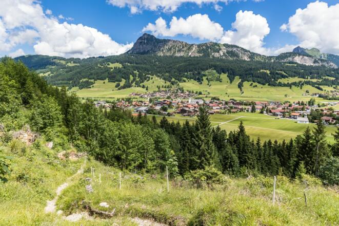 Über A7 bis nach Oy Mittelberg, weiter auf B310 bis Oberjoch und weiter über B308 über die Grenze und nach Tannheim, Neu Kienzen - Parkplatz West.