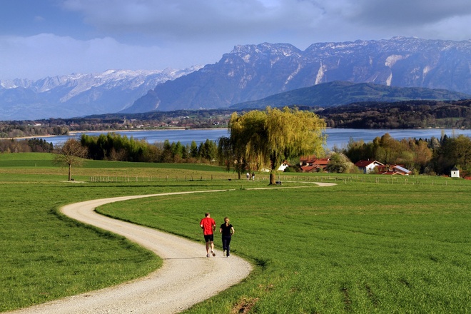 Für Romatiker: Die Blaue Route: Auf der Bundesstraße B20 von Straubing-Burghausen in Richtung Freilassing. Fahren Sie druch die schöne Landschaft, direkt ins Herz der Region Waginger See.