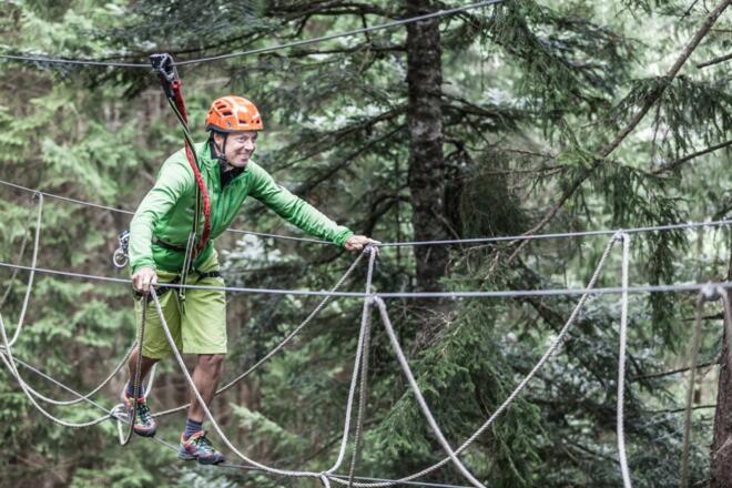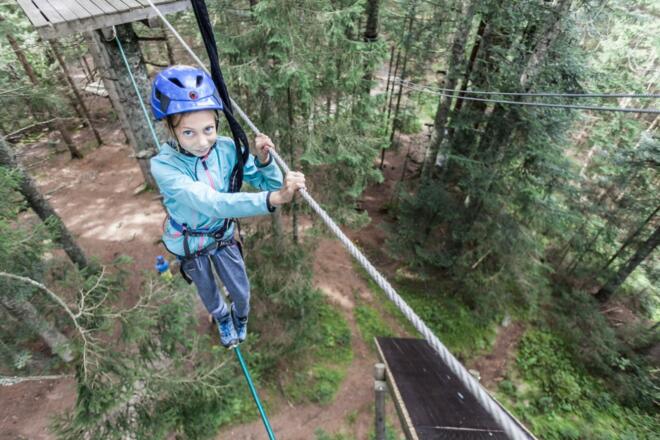 Im Waldseilgarten am Natrun finden Sie verschiedene Übungen mit unterschiedlichen Schwierigkeitsgraden.