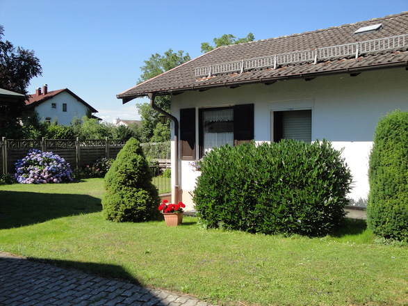 Ruhige Ferienwohnung in Seenähe mit Bergblick, 5 Minuten zur Ortsmitte. Liegewiese mit Liegen, Grillplatz, Bettwäsche und Handtücher inklusive.